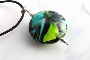 9010 Big Disc Pendant Green and Teal Marbley