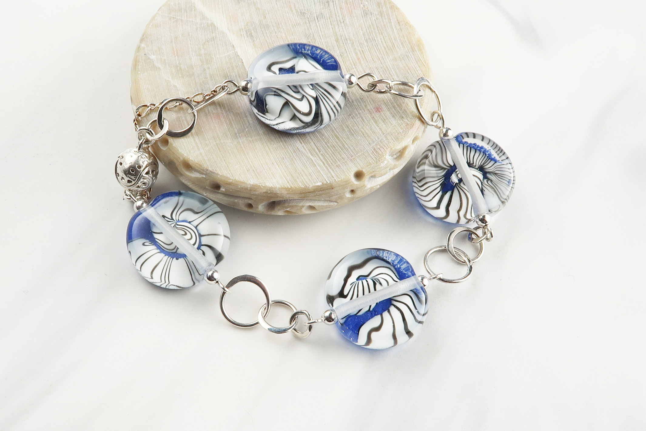 9036 RS Black White Cobalt Tab Bracelet