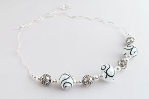 9109 Black Swirls White Cloud Necklace