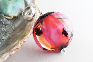 9116 AB3 Big Disc Crystal Encased Pink Black Lines Murrini
