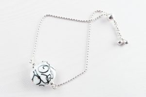 9145 2 Black Swirls White Cloud Disc Bead Slide Bracelet