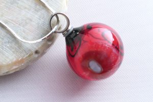 9063 RS Hollow Bead with Stainless Steel Bail- Black Swirl over Red, Coral Murrini